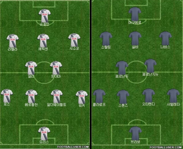 2016-2017 프리미어리그 7R, 토트넘-맨시티 선발 라인업