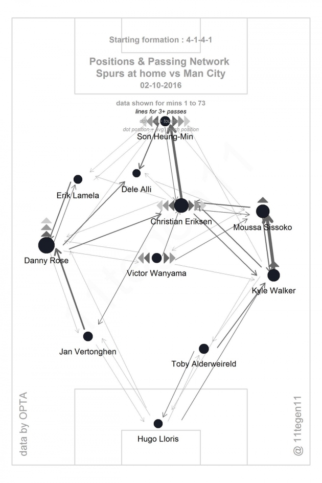 토트넘의 맨시티전 포지션&패스맵 (c)11tegen11