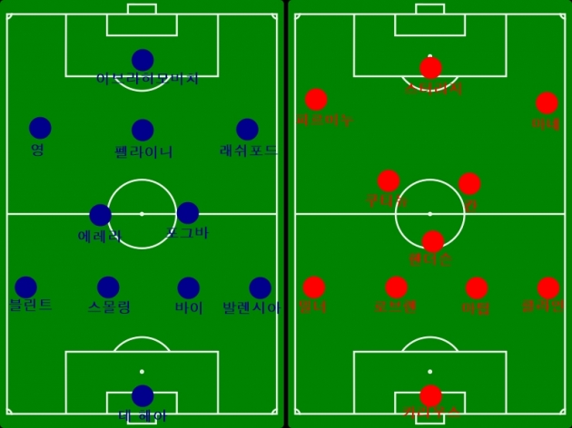 결과적으로 이번 경기를 압도당했던 무리뉴의 맨유, 그들에게서 새롭게 찾을 수 있었던 것은 '압박'이라는 색깔이었다. 무리뉴는 선수들에게 중원에서 리버풀을 이겨낼 것을 강력히 주문하였다. 펠라이니를 공격형 미드필더로 내세워 중원 허리 싸움에 힘을 붙여준 이유도 이러한 이유 때문이었고, 사실 전반전만 보더라면 무리뉴의 맨유가 정말 잘 준비된 모습으로 리버풀을 상대했었다. (경기 내용에 대한 결과가 판결 났던 후반전의 이야기는 글의 중후반부에서 다루도록 하겠다.)