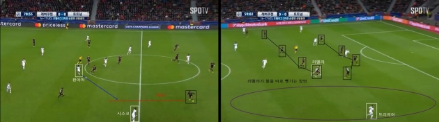 탈압박 후 트리피어에게 연결되는 토트넘의 공격 장면