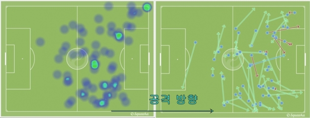 페르난두의 패스맵(좌)과 히트맵(우) (c)squawka.com