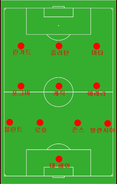 마타와 린가드를 중심으로 한 맨유의 공격 대형