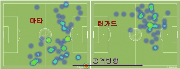 우리가 선덜랜드전 맨유를 지켜볼 때, 가장 눈여겨 봐야 할 것은 이들의 3톱 조합이었다. '린가드-즐라탄-마타'로 이뤄진 공격 대형이다. 양 측면 공격을 맡은 마타와 린가드는 올 시즌 무리뉴 체제 아래에서 공통된 역할을 맡은 적이 있었는데, 그것은 바로 오른쪽 윙어로 뛸 때 발렌시아의 오버래핑 루트 확보를 위해서 중앙 쪽으로 좁혀 플레이하는 것이었다. 그리고 이번 선덜랜드전, 이 공통된 두 역할을 맡았던 윙어들이 이번 경기에서 같이 선발로 뛰게 되었다.
