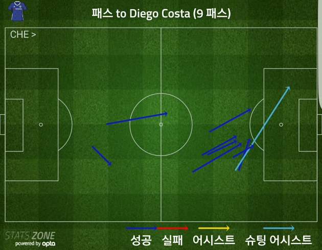 파브레가스가 코스타에게 배급한 패스 루트 (c)포포투 스탯존