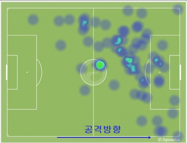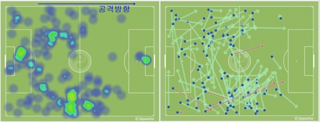 케이힐과 아스필리쿠에타의 스토크시티전 히트맵(좌), 패스맵(우) (c)squawka.com