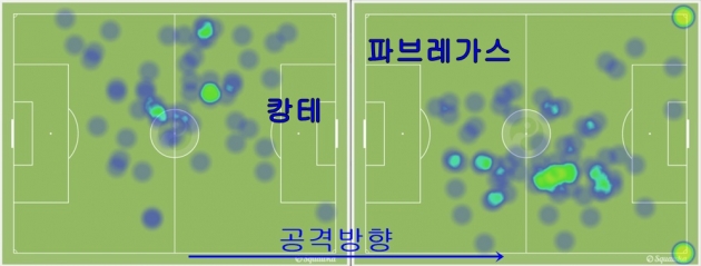 캉테, 파브레가스의 이번 경기 히트맵 (c)squawka.com