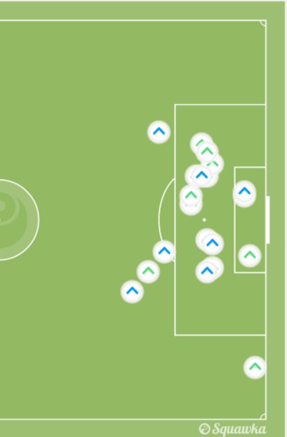 이번 경기 스완지 센터백(모우슨, 페르난데스)들의 클리어링 맵 (c)squawka.com