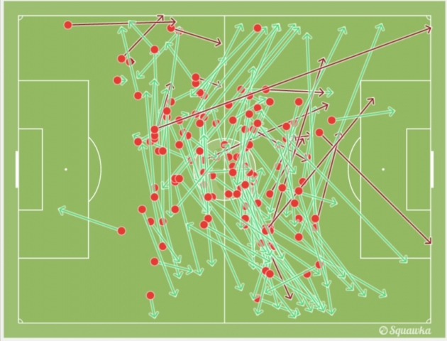 이번 경기 헨더슨의 패스맵 (c)squawka.com