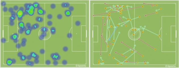 좌우 중앙 미드필더인 카스트로와 게레이로의 히트맵 (c)squawka.com