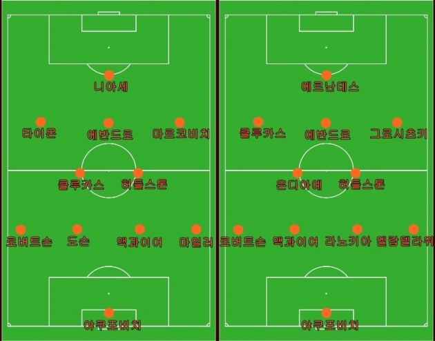 헐시티가 지난주 맨유(좌), 리버풀(우)전에 꺼내들은 선발 라인업