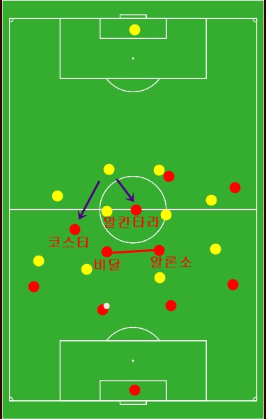 (여기서 코스타와 알칸타라를 오른쪽으로 이동시키지 않고 왼쪽으롱 이동시킨 이유를 말하라면 로벤의 오버로드 투 아이솔레이트 때문이라 할 수 있다.)